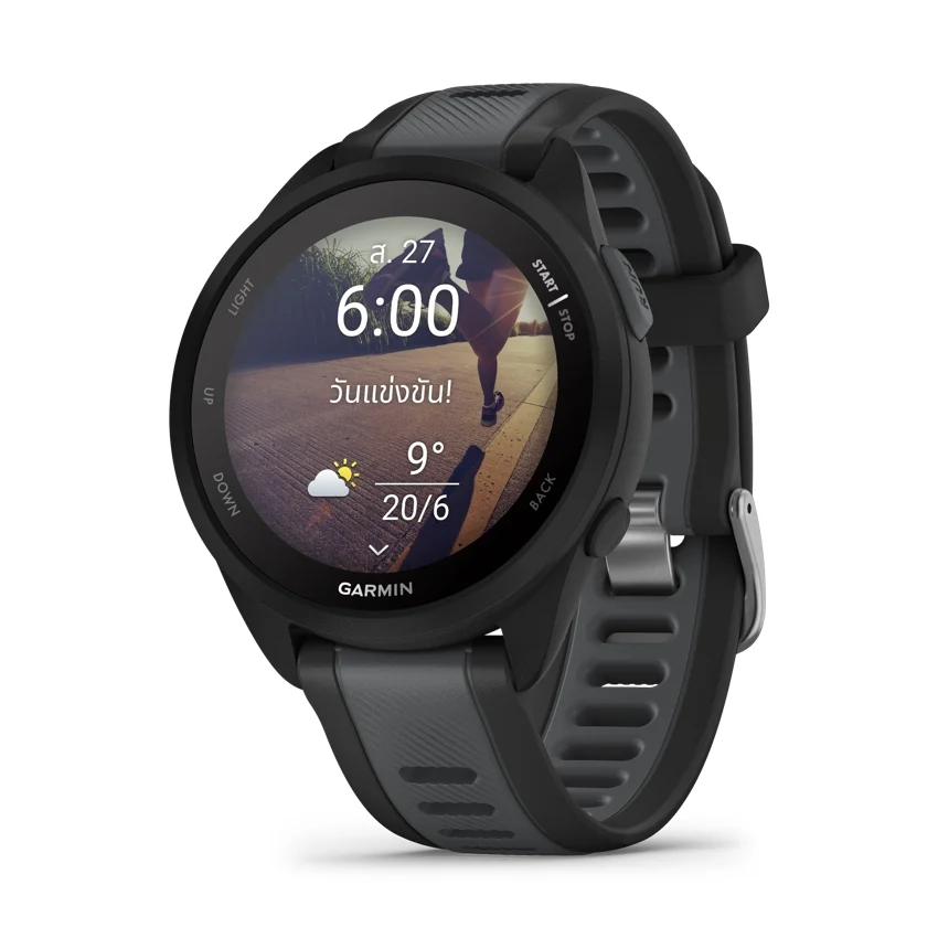 Garmin รุ่น Forerunner 165 Series สมาร์ทวอทช์ที่ออกแบบมาเพื่อคนรักการวิ่งโดยเฉพาะ มาพร้อม GPS ความแม่นยำสูง รองรับโหมดการวิ่งทั้งในร่มและกลางแจ้ง มีโค้ชเสมือนช่วยแนะนำการฝึกซ้อม กันน้ำ 5ATM ใช้งานได้นาน 11 วันต่อการชาร์จ เหมาะกับนักวิ่งจริงจัง